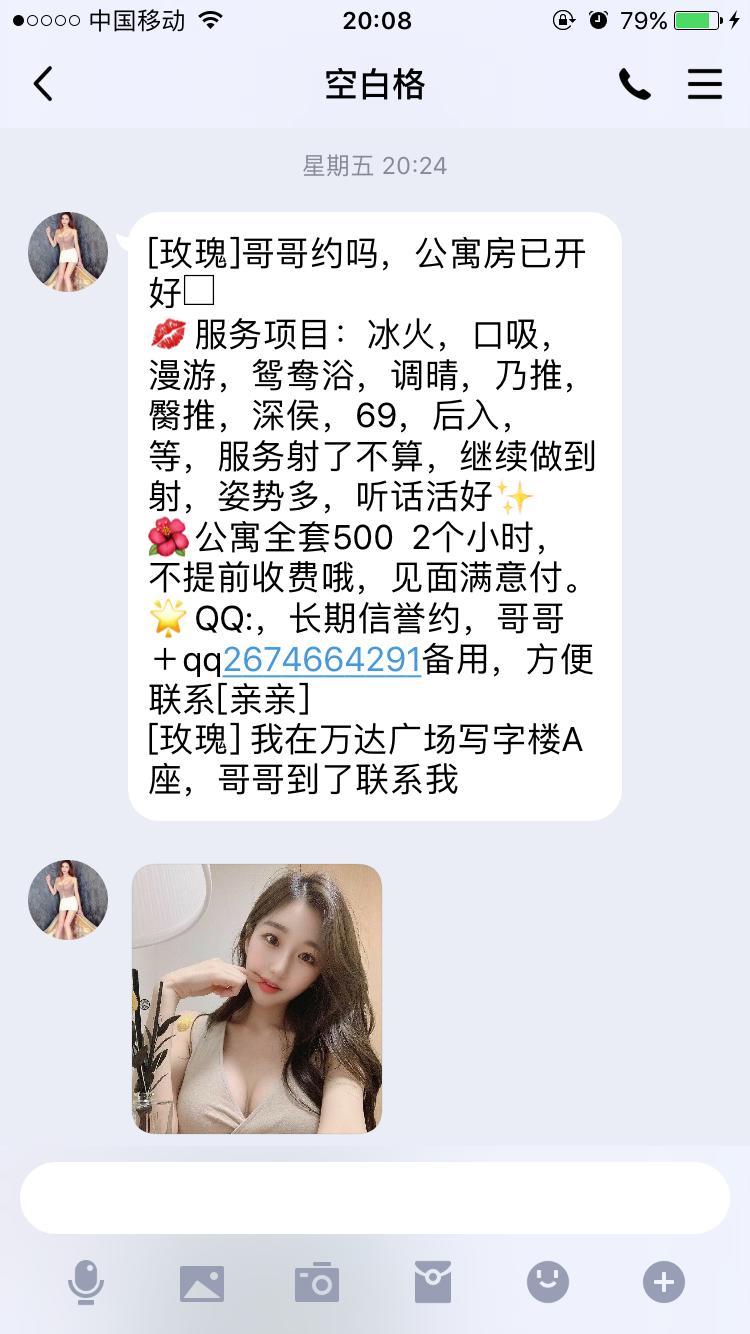 最值得推荐的地方以供参考我之前约过万达C座2605的妹子,但现在她微信封了,电话停了,有近期约过能联