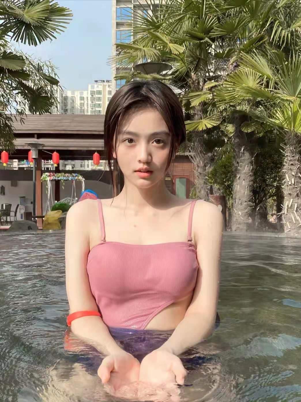 这妞儿的条件特别好,首先是年轻颜正。笑容灿烂还特别亲和,一看就是性格特别好。实打实的小性感,34c的